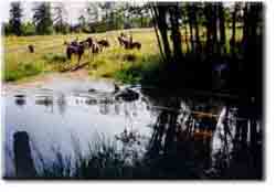 Im Sommer besteht die Möglichkeit mit den Pferden durch unseren schön angelegten Badeteich zu schwimmen. Wie auf den Fotos zu sehen ist wird dieses Angebot gerne von Jung und Alt und Groß und Klein genutzt! ![]()