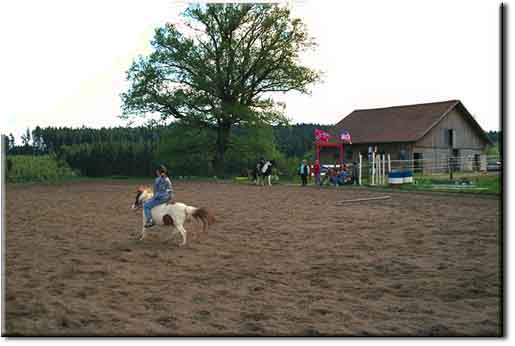 ![]() Zum trainieren oder auch für Gaudi-Trails stehen Gatter, Brücke und 3 Tonnen zur Verfügung. |