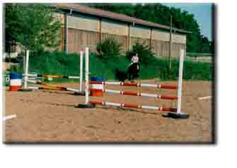 ![]() Natürlich gibt es auch höhenverstellbare Hindernisse mit verschiedenen Stangen und Cavalettis. |